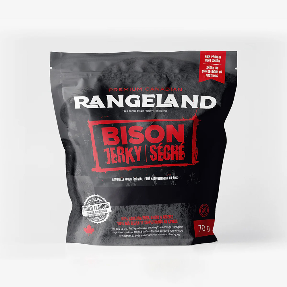 Fuel your day with Rangeland Bison Jerky—lean, clean, and bursting with flavor. Made with 100% Canadian bison and naturally sweetened with pineapple juice and apple cider vinegar, this gourmet jerky is a protein powerhouse that’s free of added hormones and antibiotics.