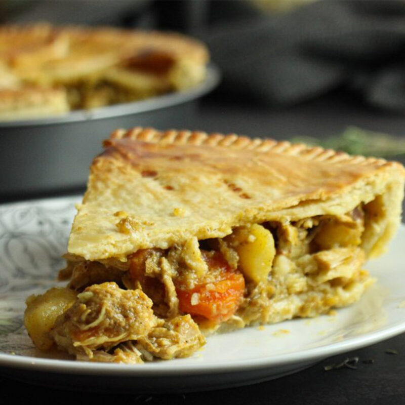 Chunks of chicken, carrots, peas and potatoes smothered with curry & tomato paste. Sold frozen. Simply heat & serve.