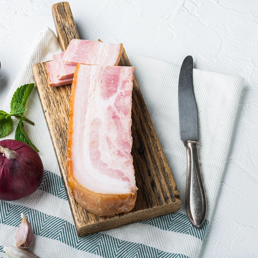 Use as a flavour base and meat in hearty dishes such as baked beans and chowders. Rinse before using. Sold prepackaged, approximately 1.25 lbs per piece. Price shown is approximate and will vary depending on weight of each piece.